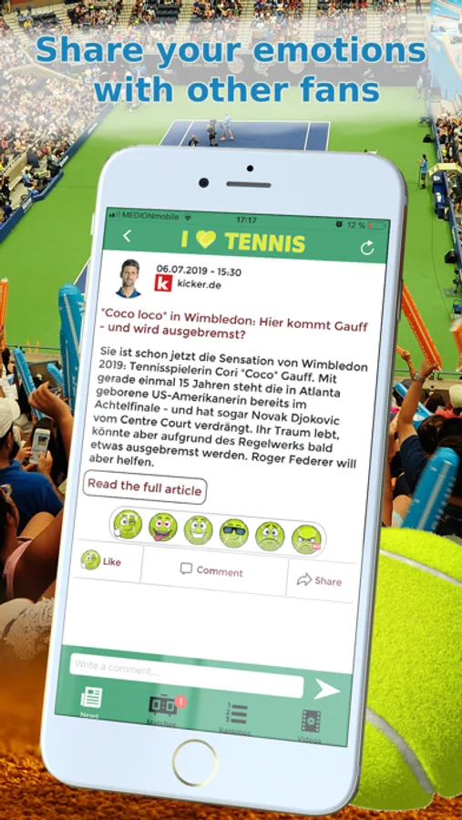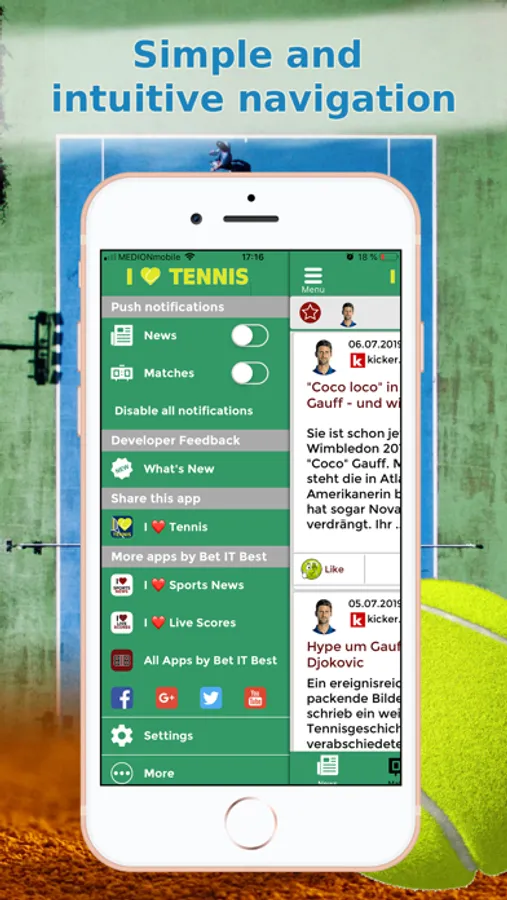 • Become part of the tennis community: We offer an app internal chat for all tennis fans