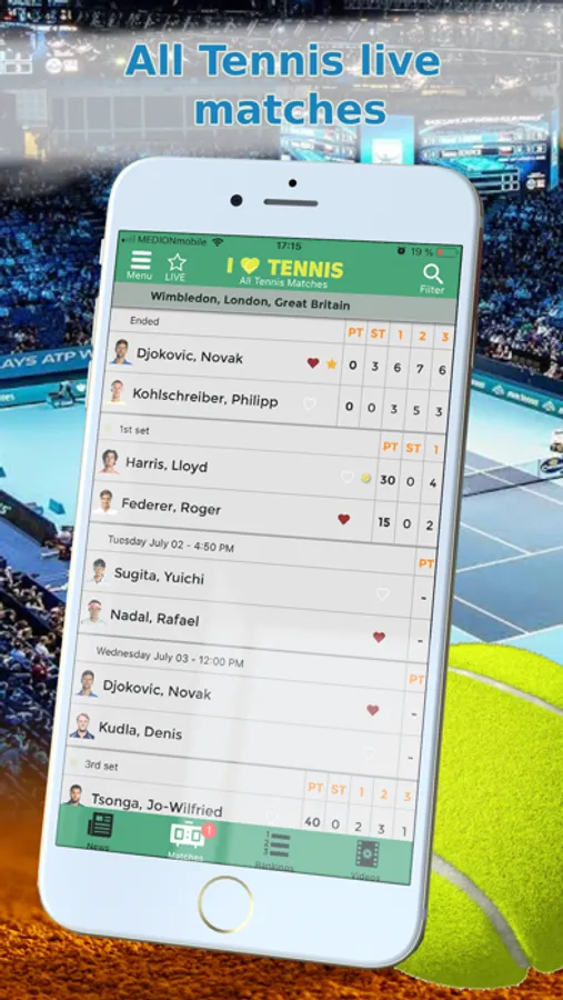 Latest WTA and ATP news, the fastest Tennis livescores and extensive Tennis statistics. We will send you all Tennis news, live results and match reports in real time to your smartphone, if you want, even with push notifications!