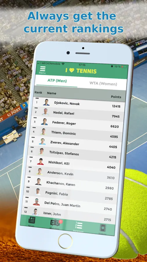 Breaking news, highlight videos or live match tracker for the Australian Open, French Open, Wimbledon or US Open - you will always be up to date with our free Tennis app.