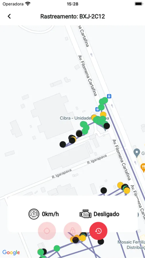 - Permite visualizar o modo rua (Street View) da posição do veículo no mapa;