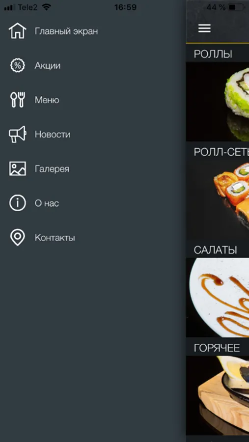 Мобильное приложение для кафе/бара Уголь служит для своевременного информирования клиентов об Акциях, Новостях, Ценах.