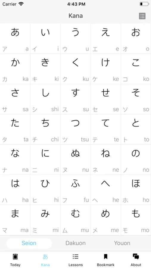 - Multiple choice questions, challenge yourself with translations among hiragana to katagana, hiragana to romaji and katagana to romaji.