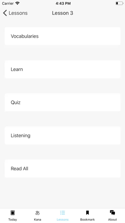 - "Read All": Are you dreaming about having a tutor to read all the vocabularies in one go? If yes, you should definitely try our Read All function. Every word in the lesson is pronounced and followed by its meaning read out loud.