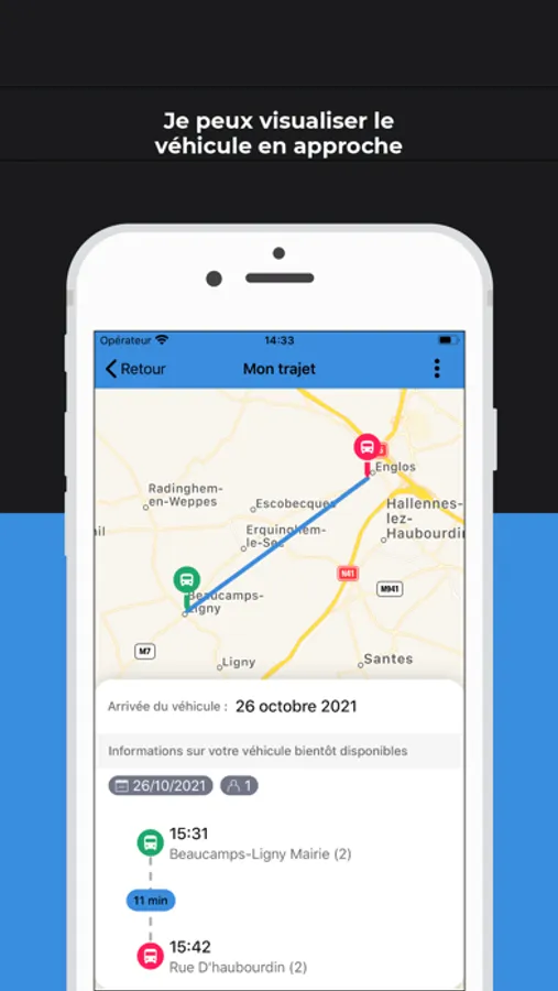 Vous pouvez réserver votre transport jusqu’à 1h à l’avance.