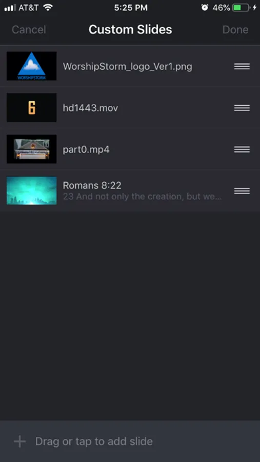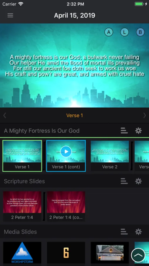 - Custom Slides feature to add text and media slides (such as scripture and videos)
