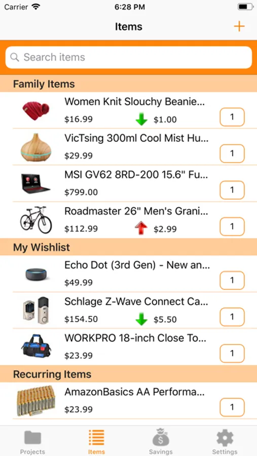 Got some ad hoc items to purchase? No problem. You can share items from Amazon's app or website with Shopping Guru making it easier to transfer your wishlist or other items. You can even share an item that is currently unavailable. Alternately, you can always add items from Shopping Guru itself. Organize items into Item Groups for convenience. Once added, Shopping Guru will track product availability and price changes.