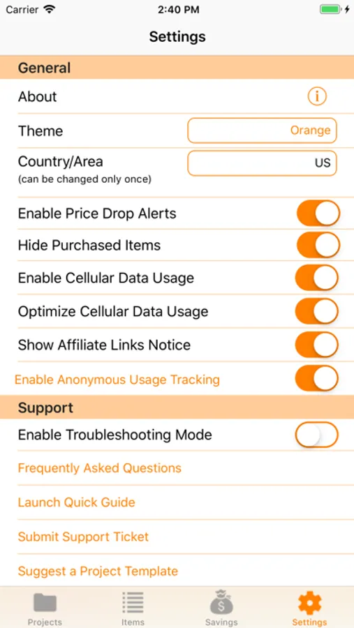 Personalize the app using Settings. Choose theme color, launch the Quick Guide, get help, and more. You can also suggest a new template!