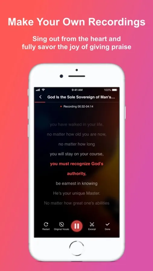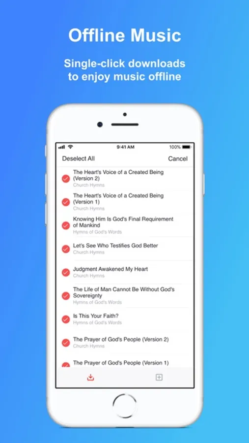 With a variety of collections to choose from, you can easily find the hymns that you enjoy. Record a cappella songs or solos, and sing out from your heart in praise of God. Easily add the hymns you enjoy to your Favorites or Playlist. With one-click downloads of the music you like, you can listen offline at any time. Toggle to see songs in different languages with a single touch for an array of global musical styles.