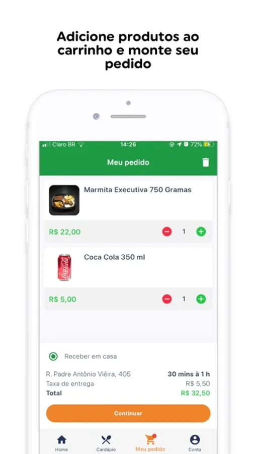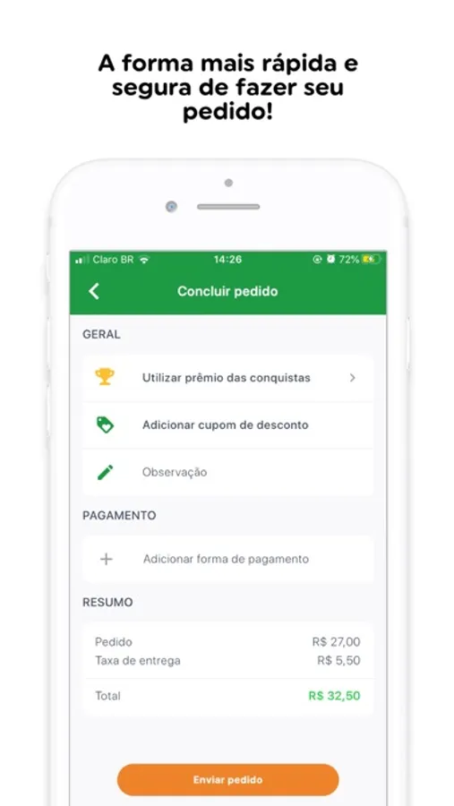 Para nos ajudar a melhorar cada vez mais a sua experiência, você pode avaliar cada pedido e dar sugestões diretamente no aplicativo.