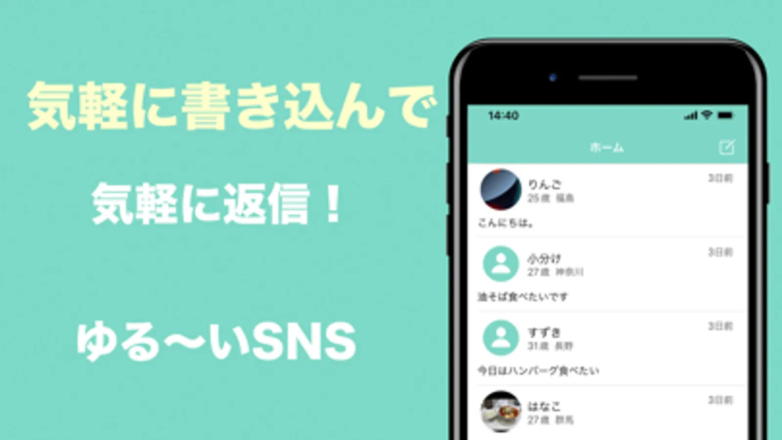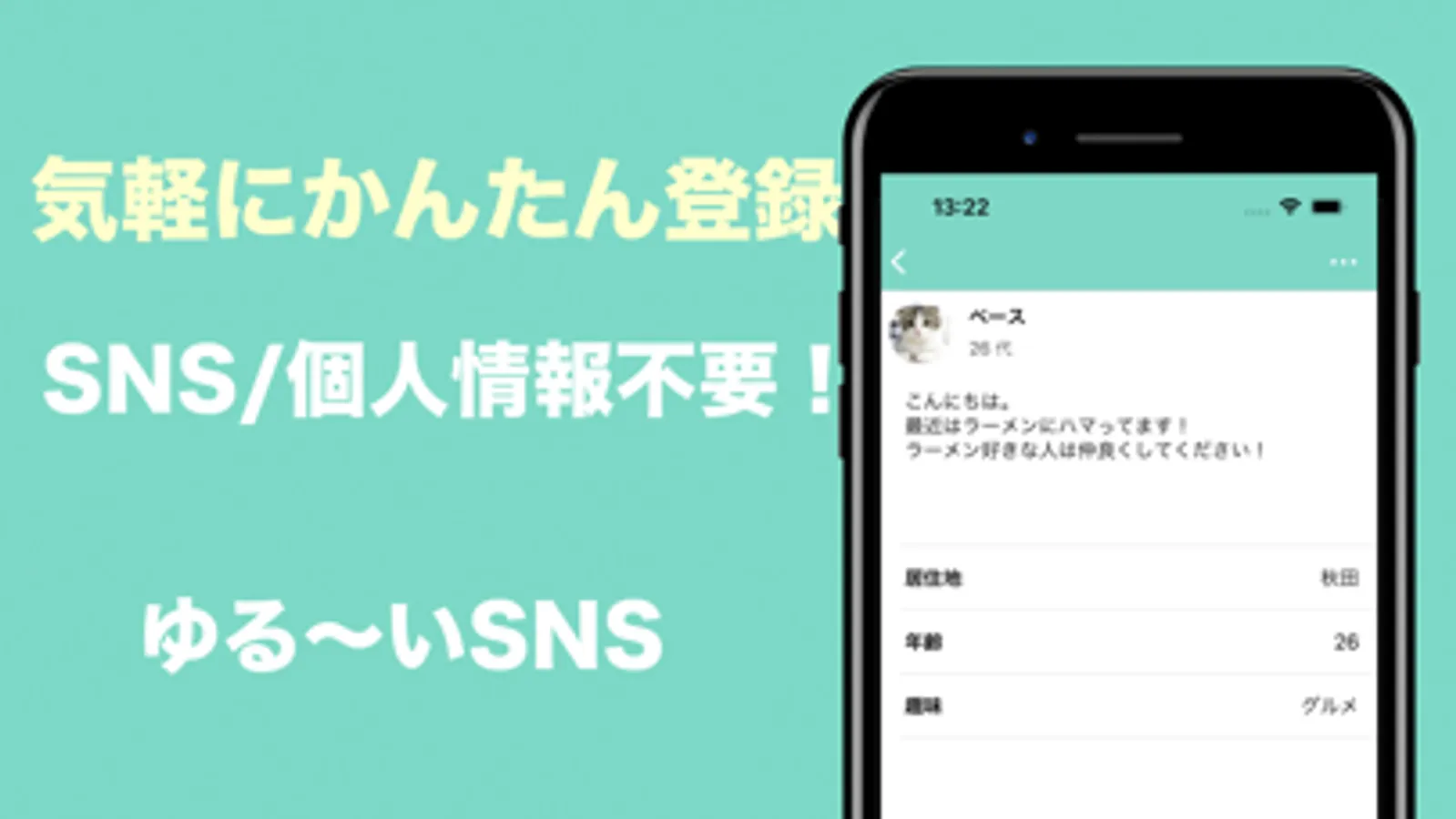 ニックネーム・年齢(任意)・都道府県(任意)・自己紹介文(任意)を設定するだけです!