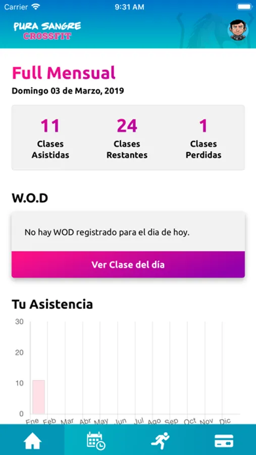 - Panel "Tus Clases" donde podrás ver el Workout de la clase de hoy y de las asistidas, además podrás tomar notas de cada una de tus clases.