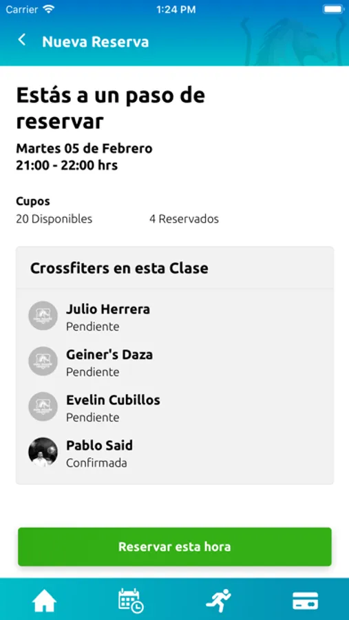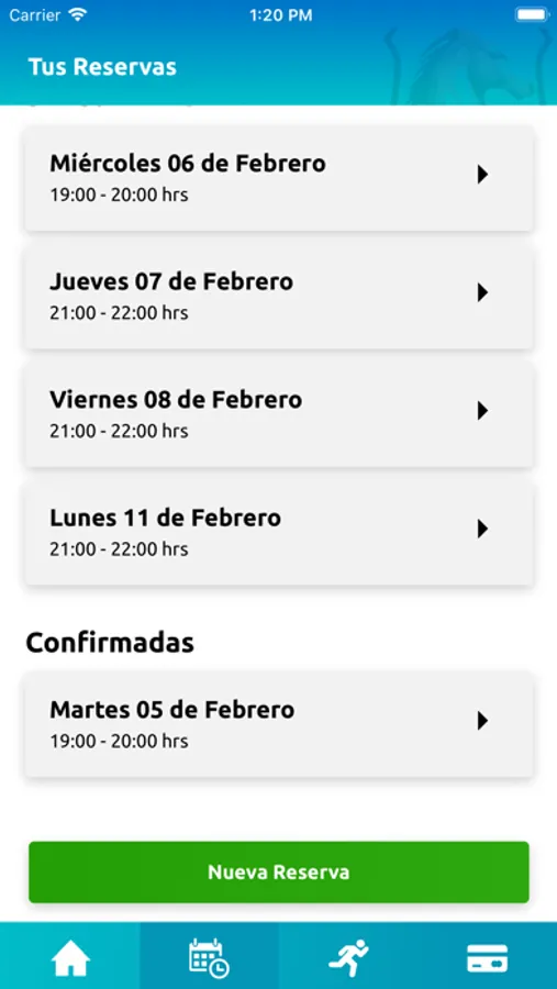 - Panel "Tus Reservas" donde podrás gestionar las horas en que asistirás al box, hacer reservas, confirmar o ceder cupos.