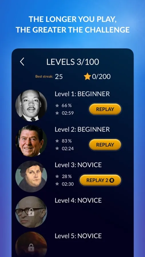 Move up through 10 ranks of difficulty starting as a Beginner,
