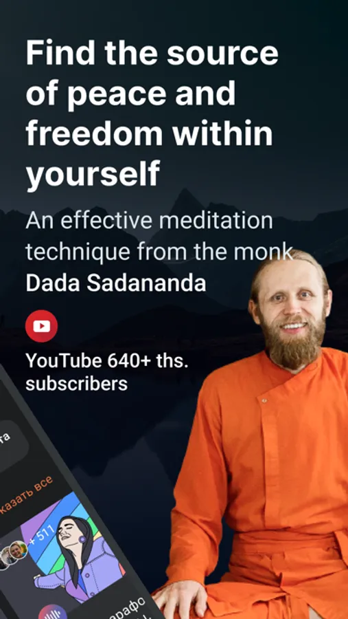 We want meditation and yoga practices to be accessible for everyone and change society positively . Therefore, meditation training with us will always be free, marathons and intensive practices - on donation basis. The application will help you learn a simple meditation technique, develop regularity in yoga practices, as well as explore other useful habits for a harmonious and happy life. Here you will find everything you need: meditation for beginners, marathons of good habits, practices for awareness and self-development, free courses in philosophy and yoga practices.