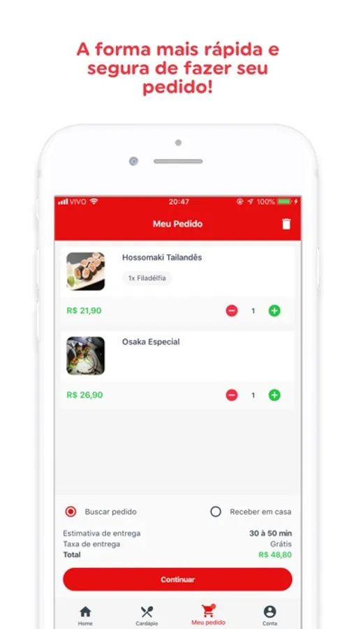 Telefone é coisa do passado! Este é perfeito para você que gosta de praticidade, agilidade e conforto na hora de fazer seu pedido! Além de possuir vantagens exclusivas, você realiza seu pedido totalmente através do aplicativo.