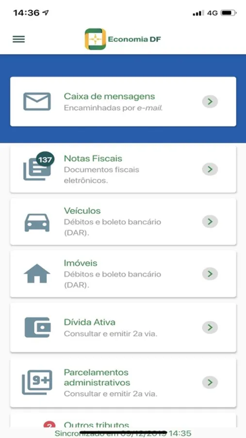 Aplicativo da Secretária de Economia do Distrito Federal (SEEC-DF) para oferecer ao contribuinte uma central de serviços. Nesta versão, o contribuinte poderá consultar as mensagens recebidas por e-mail, verificando a sua autenticidade, cadastrar veículos para consultar débitos de IPVA, cadastrar imóveis para consultar débitos de IPTU, consultar parcelamentos ativos, consultar as notas fiscais eletrônicas do DF, emitir o boleto bancário (DAR) e ler notícias publicadas no site www.economia.df.gov.br.