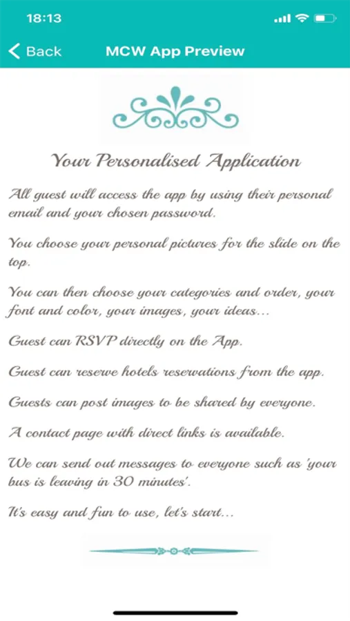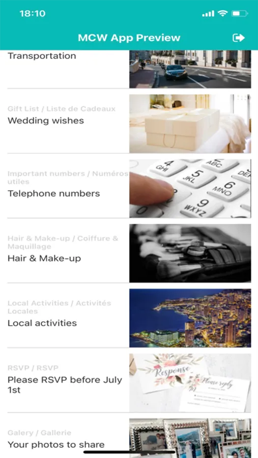 Created specifically in mind for their future Brides and Grooms to share with their guests as they plan and experience their Wedding Celebrations. With this application and as a wedding guest, you will have at your disposal all the details of the unfolding of the events to come and be able to organise your own planning of your visit to the Principality of Monaco and the surrounding areas of the South of France. Be ready to anticipate any question by this interactive application: