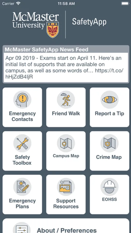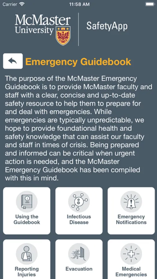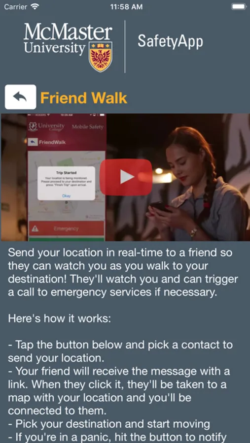 McMaster SafetyApp is the official safety app of McMaster University. It is the only app that integrates with McMaster's safety and security systems. McMaster University has worked to develop a unique app that provides students, faculty and staff with added safety on the McMaster campus. The app will send you important safety alerts and provide instant access to campus safety resources.