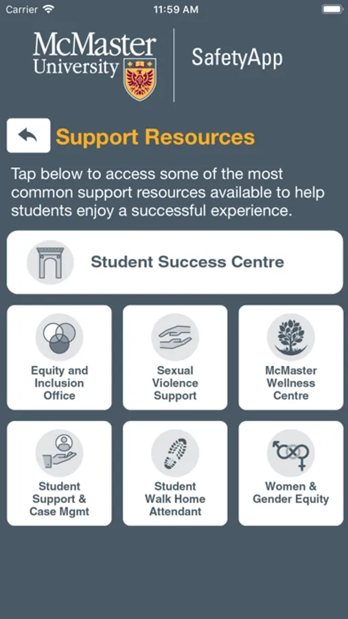 - Campus Safety Resources: access all important safety resources in one convenient app.