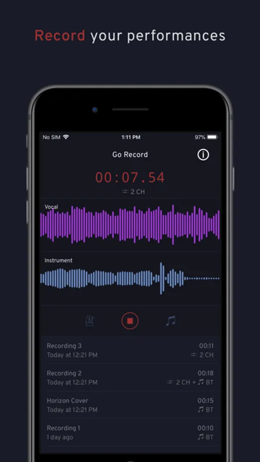 * Capture your instrument performance on a separate audio track.