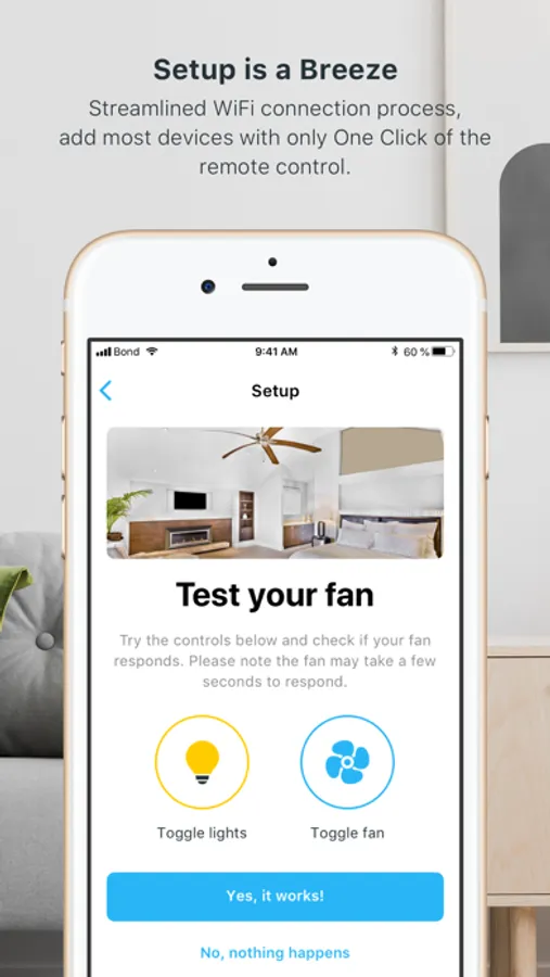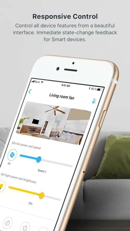 Bond Home is a leading platform for Smart By Bond ceiling fans (no hub required), remote-controlled motorized shades, ceiling fans and fireplaces (Bond Bridge is required).
