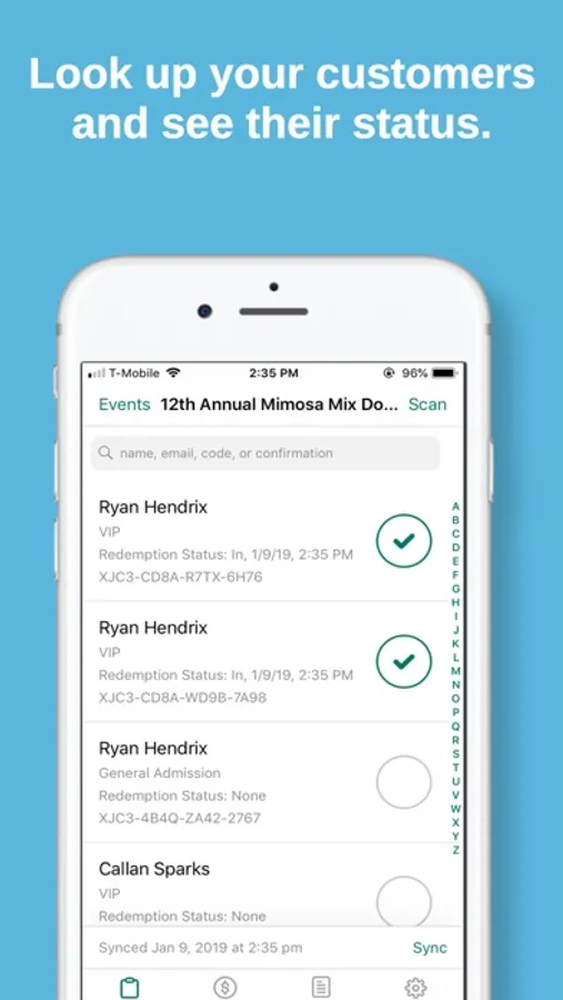 The app syncs all sold tickets to your device, and also uploads successful scans to our servers. When connected to the internet, you can operate several scanners at a time and never worry about duplicate tickets!