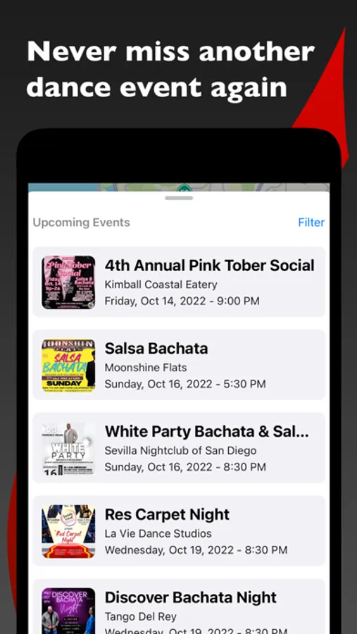 With Vive Dance X, you will always know what the dance scene is doing in your area. Download today!