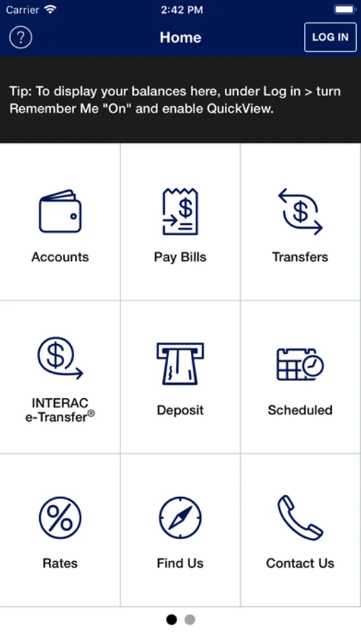 To take advantage of the full functionality of this app, you must already be registered and have logged in to Online Banking.