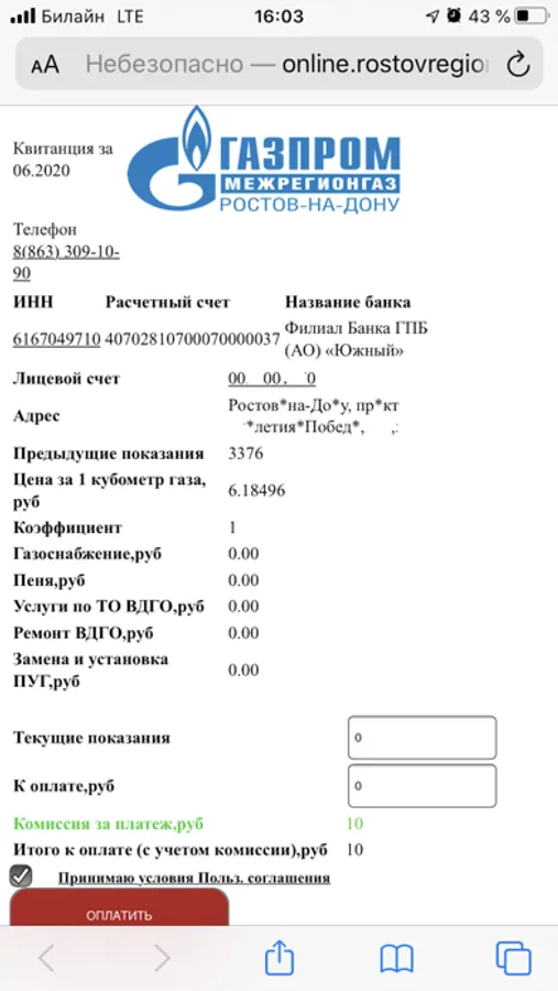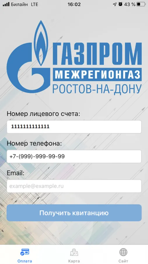 Нажатие кнопки «Получить квитанцию» переведет Вас на страницу, на которой Вы сможете просмотреть и оплатить Вашу текущую квитанцию с карты любого банка.