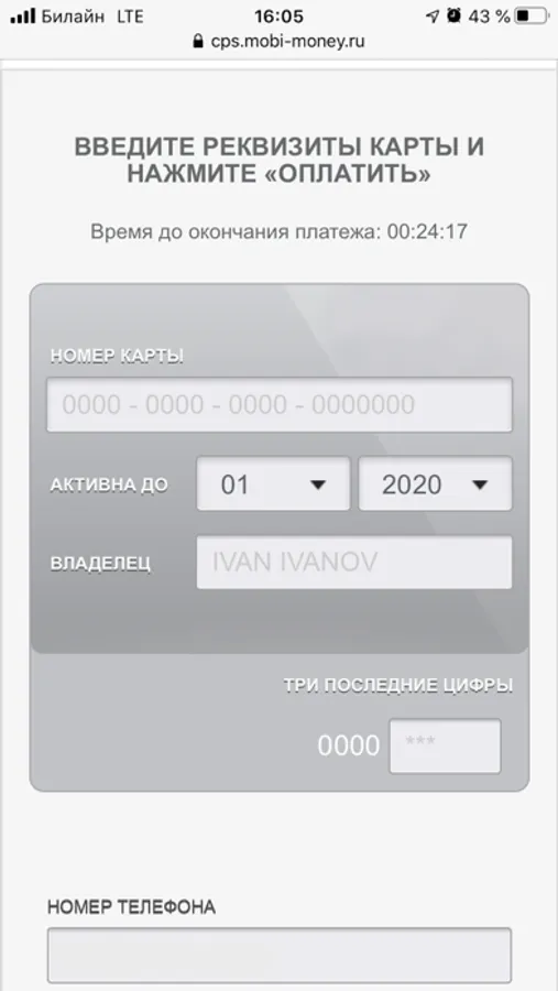 4) Введите свой мобильный телефон