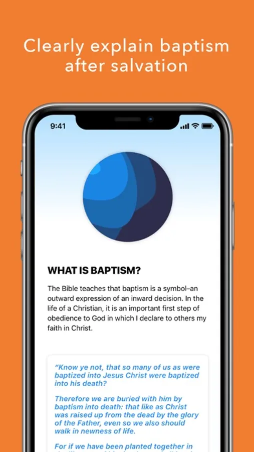 The Commission App also helps you easily explain to someone about baptism, what it is, who it is for, and why someone with a personal relationship with God should be baptized.