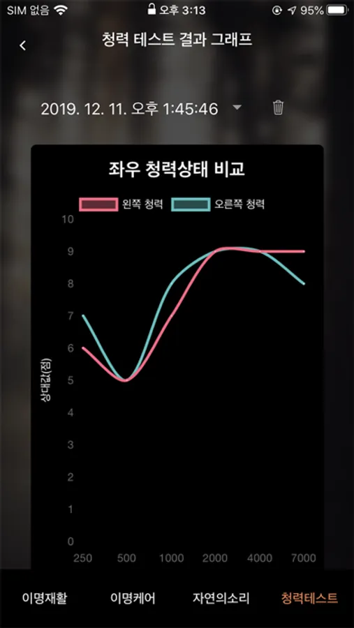 - 본인의 청각 상태를 체크하는 기능이 탑재되어 있으며, 이 차트를 사용하여 귀 상태를 시각적으로 볼 수 있습니다.