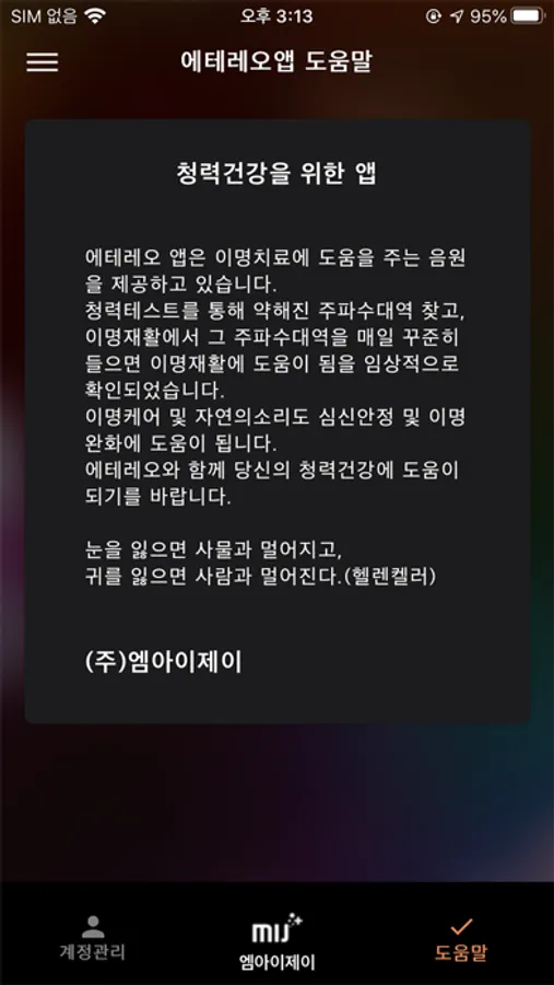 - 한림 대학교 진인기교수팀에서 제공한 검증 된 이명 테라피용 사운드를 제공하여 사용자는 즉시 이명을 가려줄 수 있는 기능이 포함되어 있다. 그리고 제공되는 TRT사운드를 장기적으로 청취 시 이명을 감소 시킬 수 있습니다