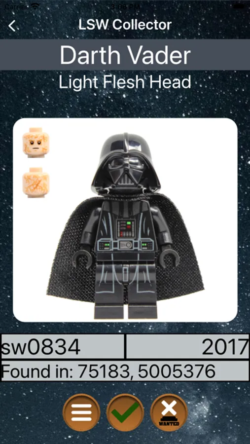 LSW Collector is the most detailed LEGO Star Wars minifigure collecting app around and is the perfect way to catalogue your collection! Use the search bar to quickly find your minifigures by unique ID, name, or set number. You can swipe between minifigure entries to easily update your collection! Each minifigure page provides all the relevant information you need to know. Saving the best for last, exclusive to the LSW Collector app is a section dedicated to more obscure variants! Entries for all minifigures made from 1999 to current are included and are added in real time which means you don't have to wait for an update to check them off. We promise to continue to update with the newest minifigures so that you can continue expanding your collection!
