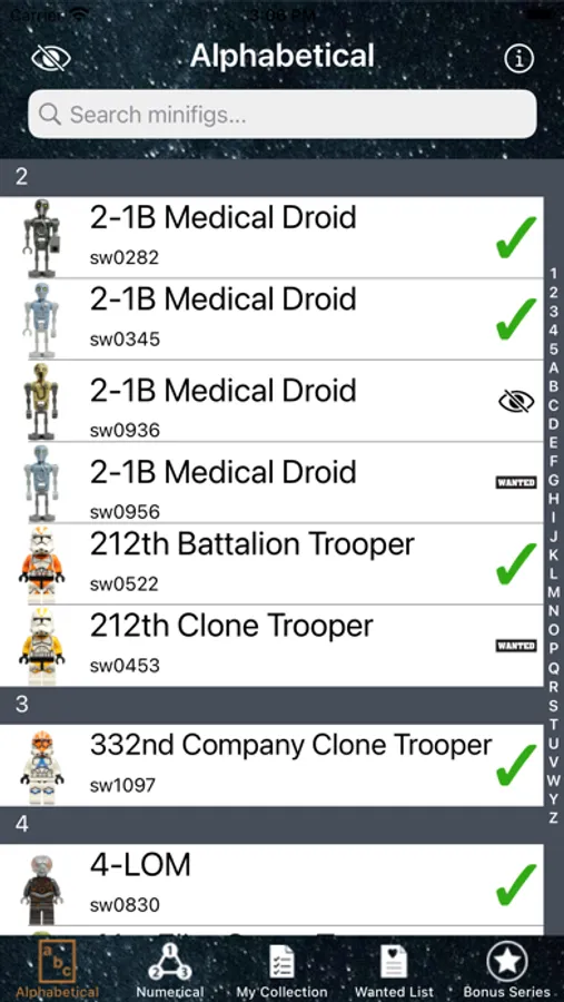 LSW Collector is an unofficial mobile application for all collectors of LEGO Star Wars minifigures. Made by a collector for collectors!
