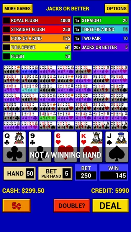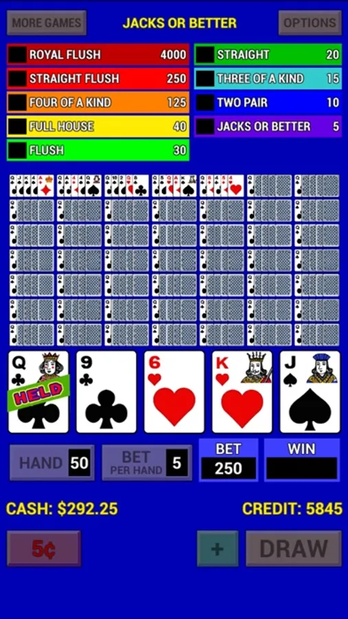 Video Poker Multi. features your favorite Triple Play, Five Play, and upto Fifty Play video poker games. With authentic card shuffling, top casino paytables, and real dealing, you’ll have Las Vegas with you anytime, anywhere.