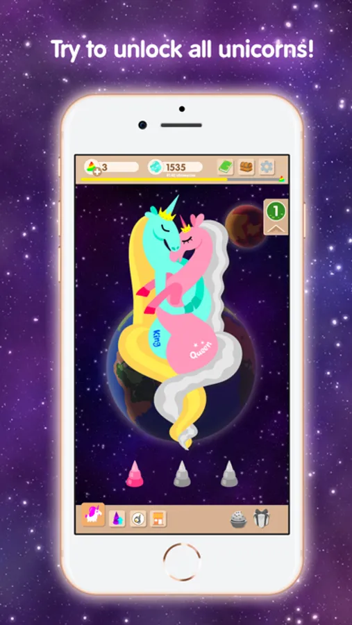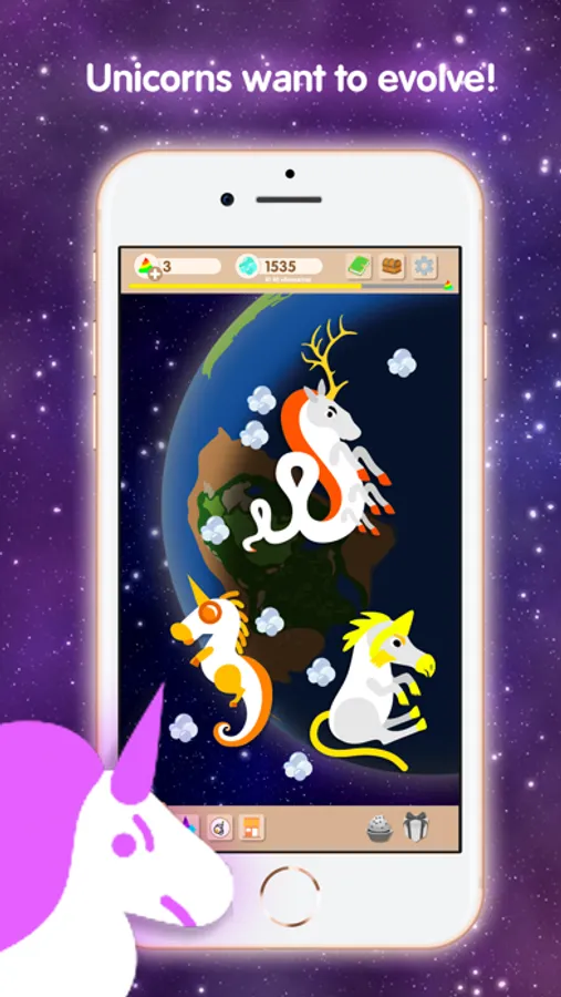 Cute unicorns want to evolve! Help them, discover new kinds, earn clouds and rainbow, feed unicorns with cupcakes! Cuties are waiting for your participation!