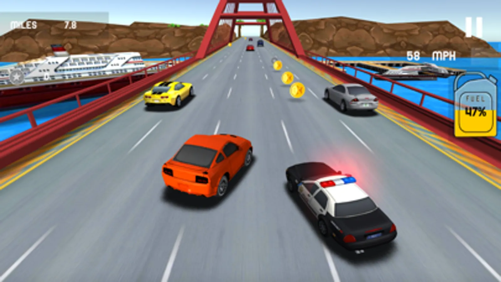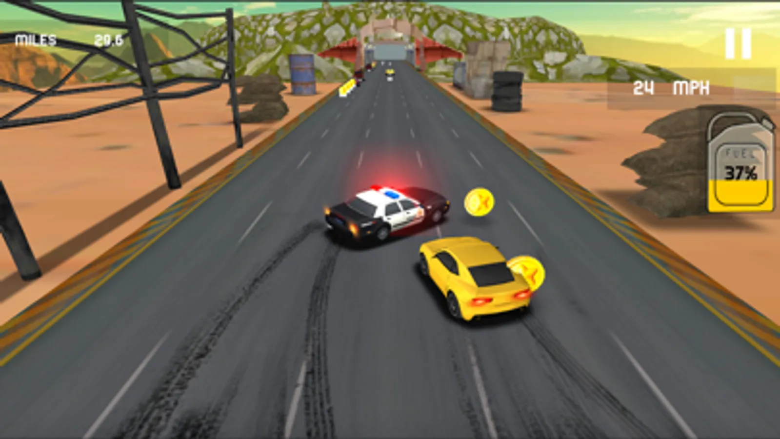 Your aim is to drive as far as possible with our getting caught by the cops and outrun the police cars. First mistake and cop car will come close to you and second mistake will get you caught. Also once the fuel finishes the police will catch you.