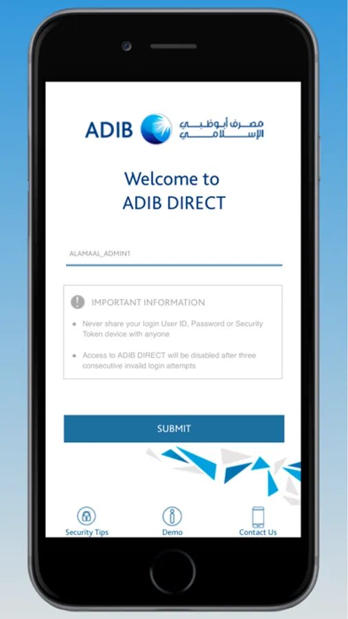 ADIB Direct - Business gives you immediate and secure access to your business's accounts and balances; you can view your account statements, transactions history, initiate transaction and approve pending activities. Offering ADIB Direct web application on iOS devices - ADIB Direct - Business; below are few highlights of the application.