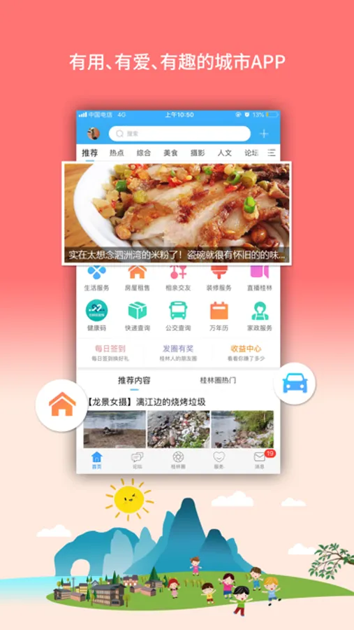 桂林生活网客户端是桂林人了解本地新闻和指导日常生活的工具,是市民互动交流的重要平台。提供桂林生活服务、桂林新闻资讯、桂林人论坛、桂林分类信息、桂林便民工具等城市综合服务。