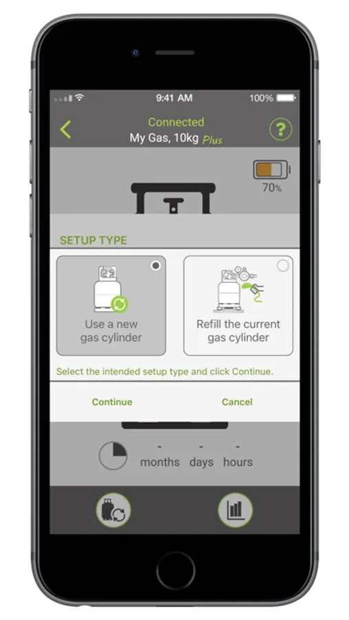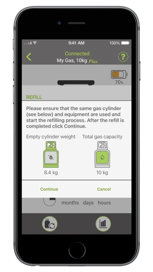 The app calculates when you will most likely run out of gas based on a state-of-the-art numerical procedure. This provides an accurate and reliable estimation of time when the gas cylinder will be empty.