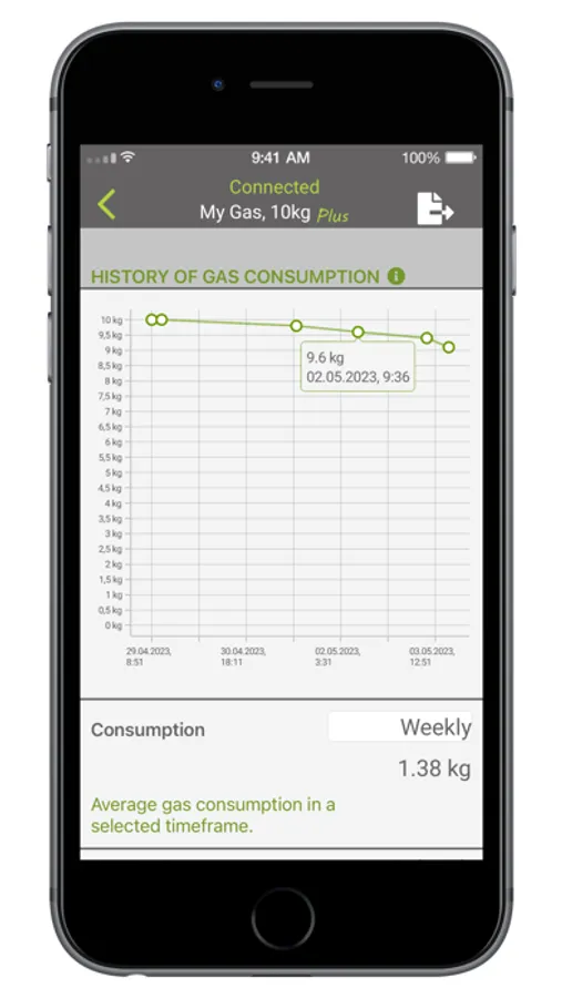 Real-time gas level monitoring with a user-friendly interface for easy and accurate data acquisition. You can easily check your current amount of gas and graphically view the history of gas consumption.