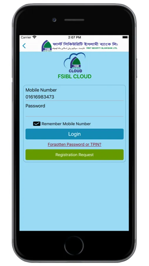 First Security Islami Bank Ltd. does not charge fee for the use of FSIBL CLOUD. Your Mobile Service Provider may charge you as per their data rate. Charges for different transaction will be declared by competent authority by circular.