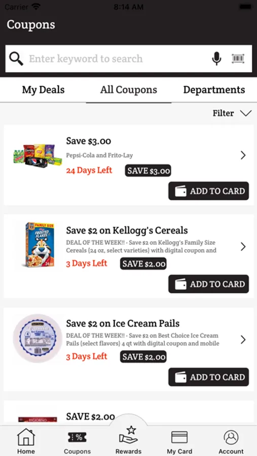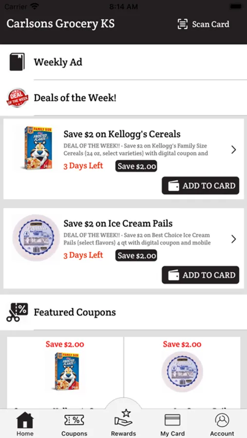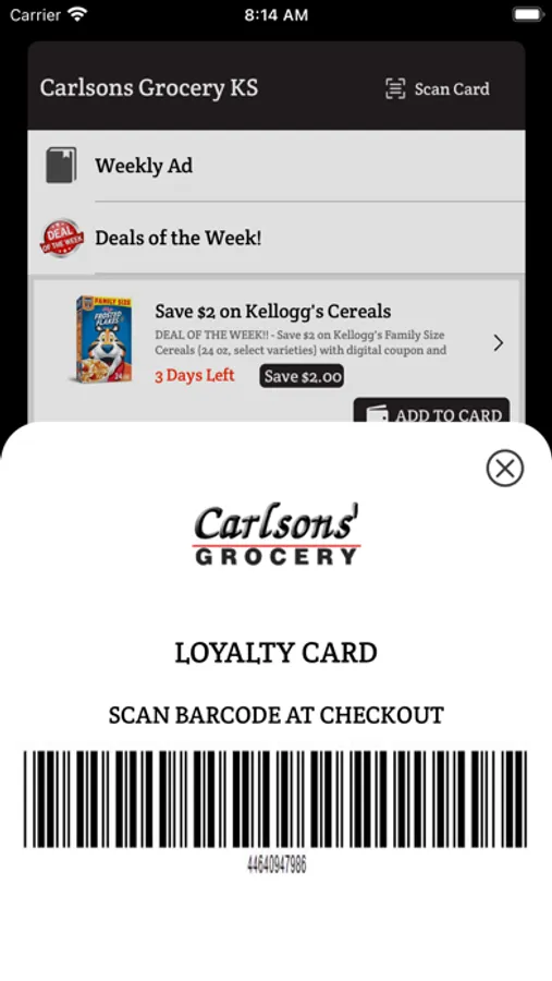 Claim as many coupons as you want with one simple scan! No more searching through mailers or printing out emails, Carlsons' Grocery is bringing rewards right to your mobile device!