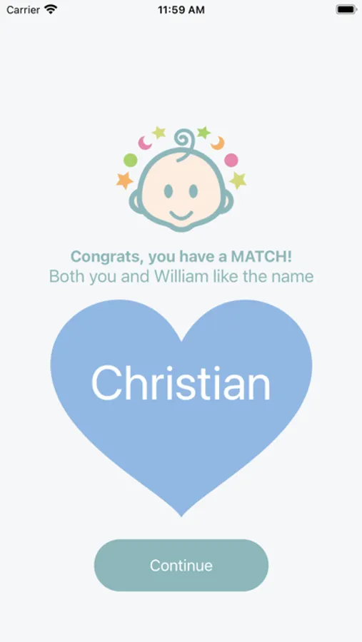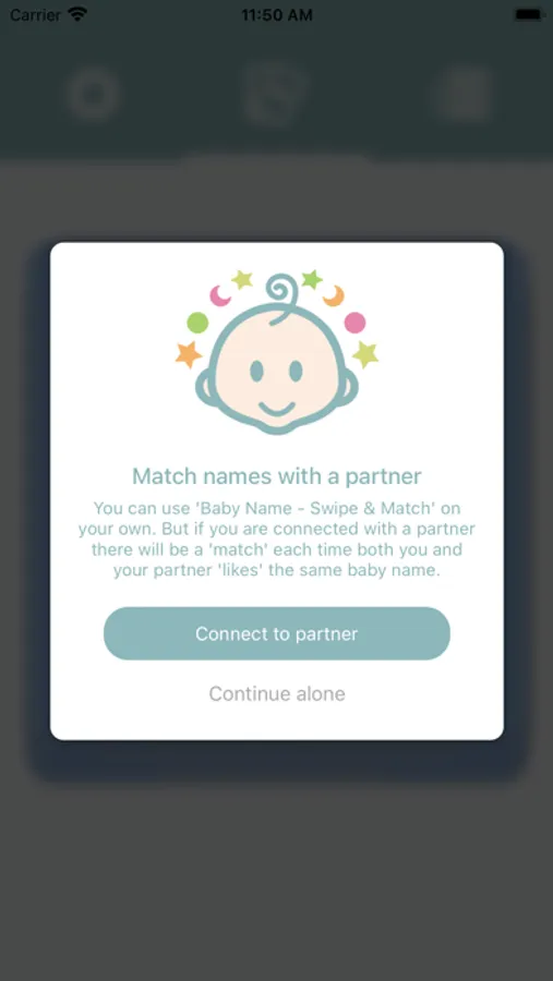 • Use ’Baby Name – Swipe & Match’ on your own or match first names with a partner