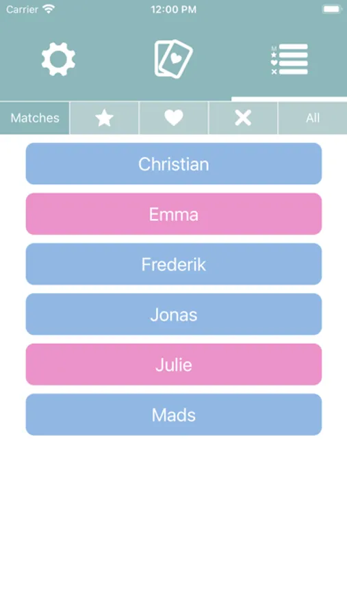 • Keep track with name lists: "Matches" (list for names you have matched with a partner), "Stars" (list of names you particularly like and have given a star), "Likes" (list of names you like), and "Ignored ”(list of names you have ignored)