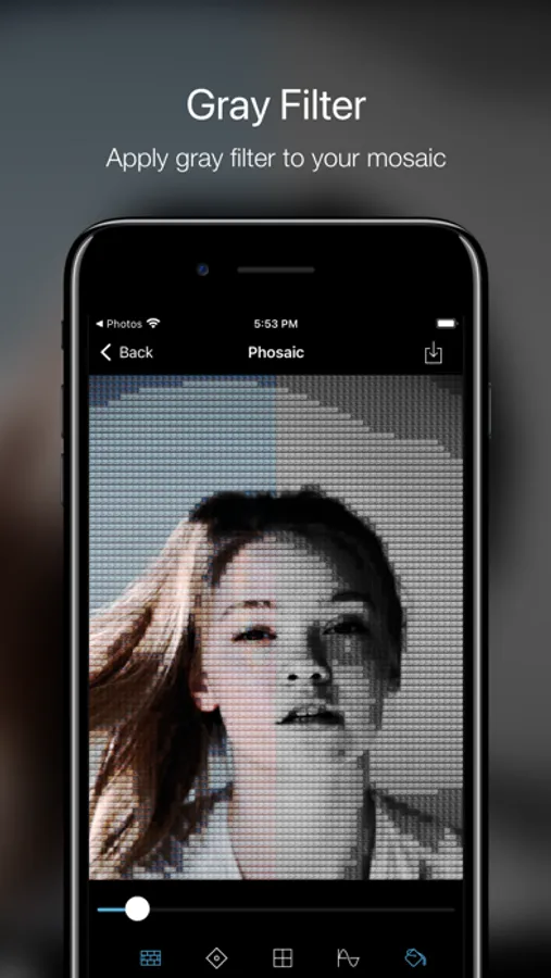 - Adjust the mosaic pixel size easily. This brings an originality to your art.