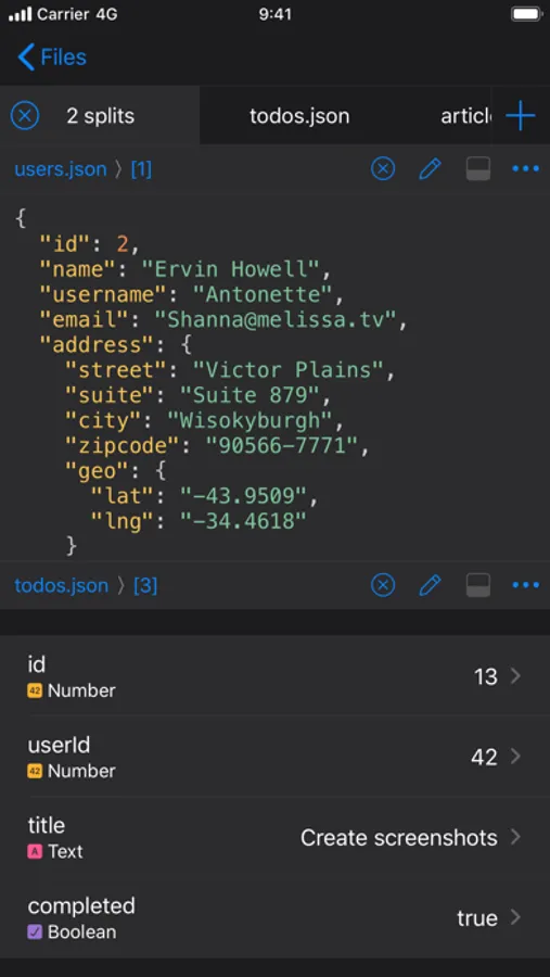 - Multiple windows on the iPad allows for even more options to browse and edit JSON documents.