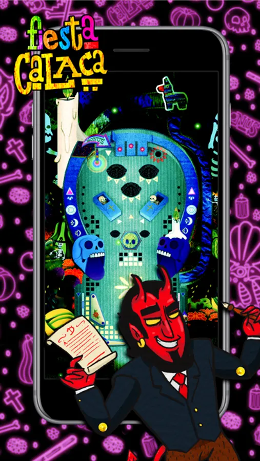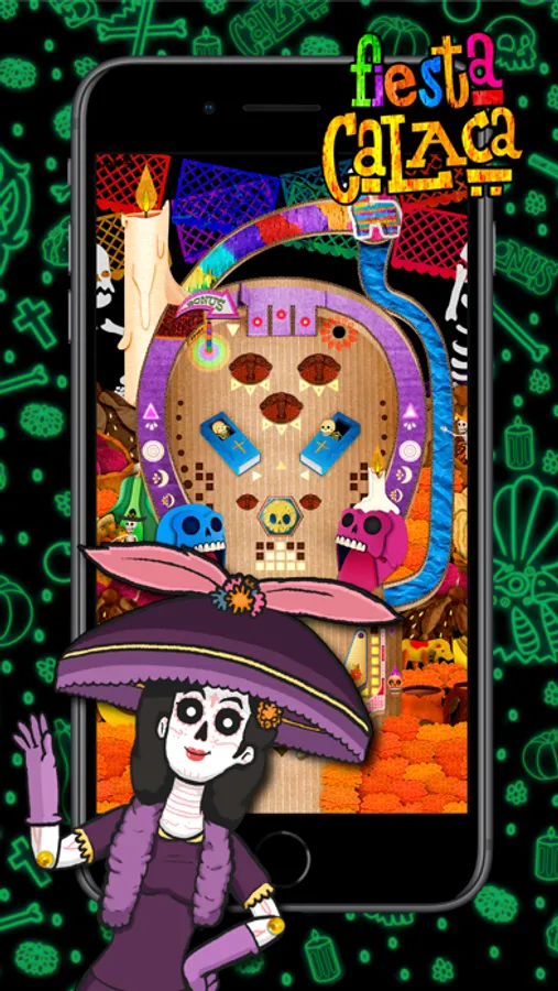 Ready for the Fiesta? Adventure yourself on this ofrenda-themed pinball board and help La Catrina to save al the calaveritas during the night, but you have to be quick, because time runs out!