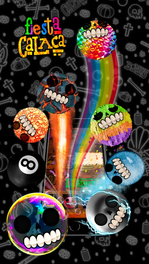 To make this happen, you'll have to throw your ball around the stage multiple times, and while you do this, you will also find a lot of different functions and surprises of the elements on the board, once you see the full moon, you're ready to save the calacas.